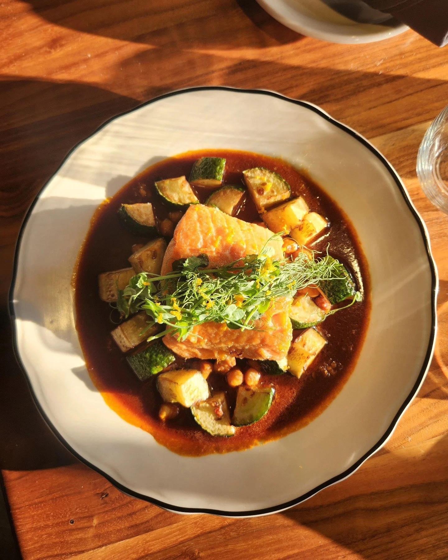 A long- luxurious bar, two giant bird cage booths, and a well-appointed dining room